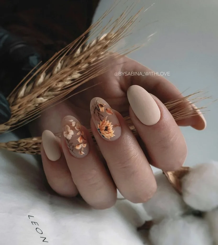 - матовий манікюр із квітами;